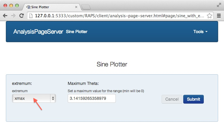Using the complete AnalysisPageServer system we can build an application that not only combines these two features—customization via parameters and plot/data interactivity—but also features a user interface to select parameter values.