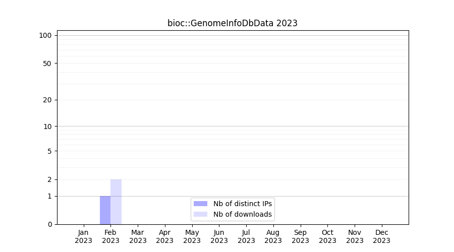 Number of downloads for workflow package bioc::GenomeInfoDbData, year by year, from 2025 back to 2015 (years with no downloads are omitted):
