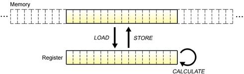 Input data, 16 bytes inclusive of scalar data, is loaded to the register and shifted appropriately to the preferred scalar element. When storing the result in the memory, the 16-bytes data inclusive of the location to store is loaded, a part of the 16-bytes data is replaced with the calculated result, and then the whole 16-bytes data is stored, because it is impossible to store just one scalar data.