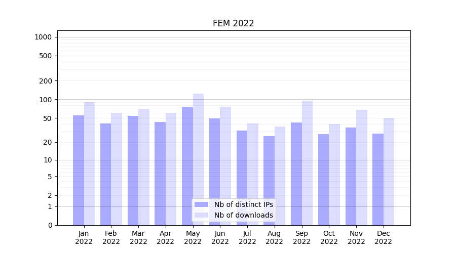 Number of downloads for software package FEM, year by year, from 2025 back to 2014 (years with no downloads are omitted):
