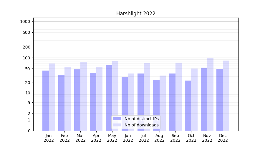 Number of downloads for software package Harshlight, year by year, from 2025 back to 2014 (years with no downloads are omitted):
