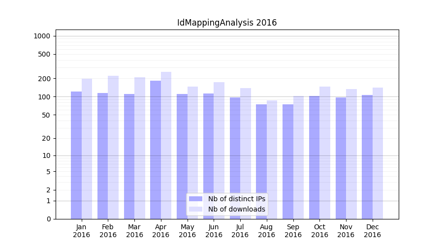 | Month | Nb of distinct IPs | Nb of downloads |