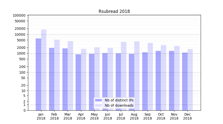 Download stats for software package Rsubread