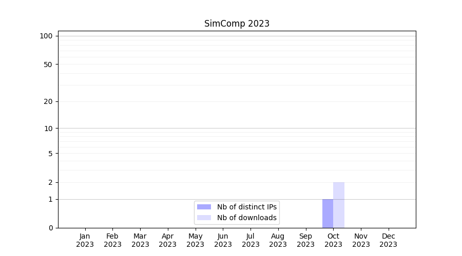 Number of downloads for software package SimComp, year by year, from 2025 back to 2014 (years with no downloads are omitted):