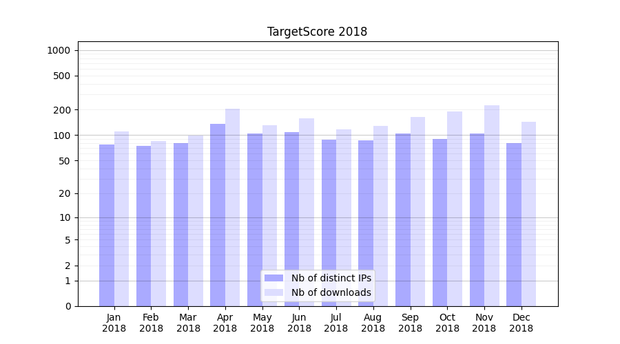 | Month | Nb of distinct IPs | Nb of downloads |