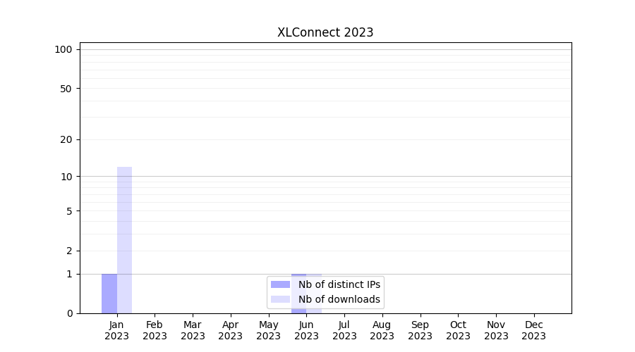 Number of downloads for software package XLConnect, year by year, from 2025 back to 2014 (years with no downloads are omitted):