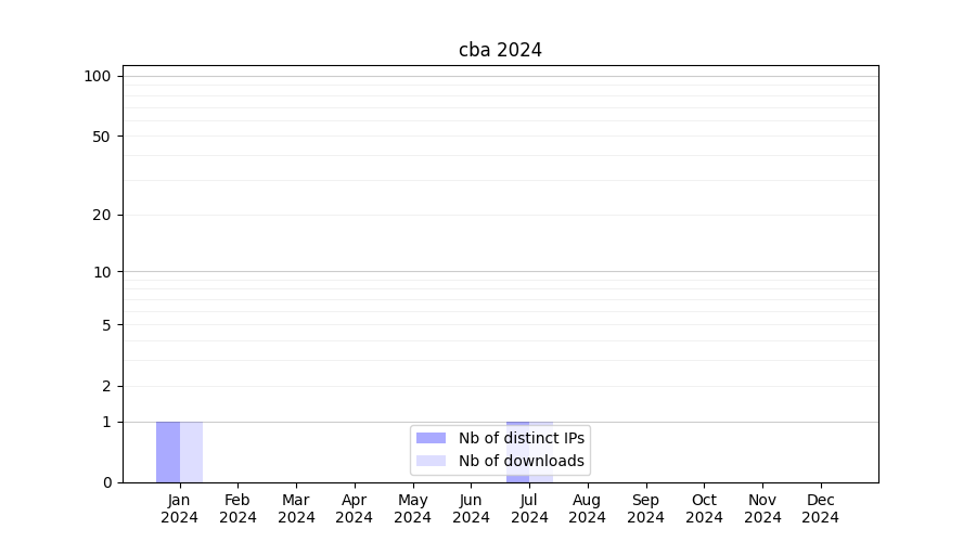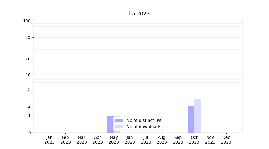 Number of downloads for software package cba, year by year, from 2025 back to 2014 (years with no downloads are omitted):