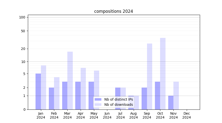 Number of downloads for software package compositions, year by year, from 2025 back to 2014 (years with no downloads are omitted):