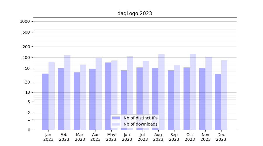 Number of downloads for software package dagLogo, year by year, from 2025 back to 2014 (years with no downloads are omitted):