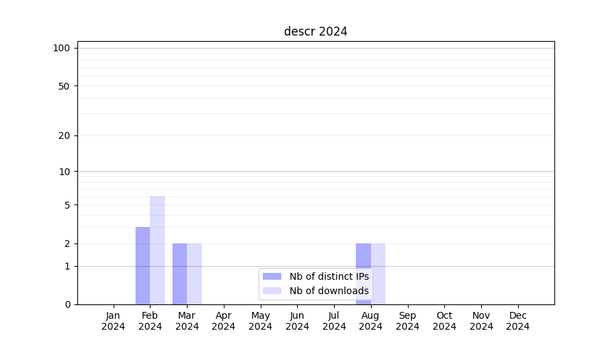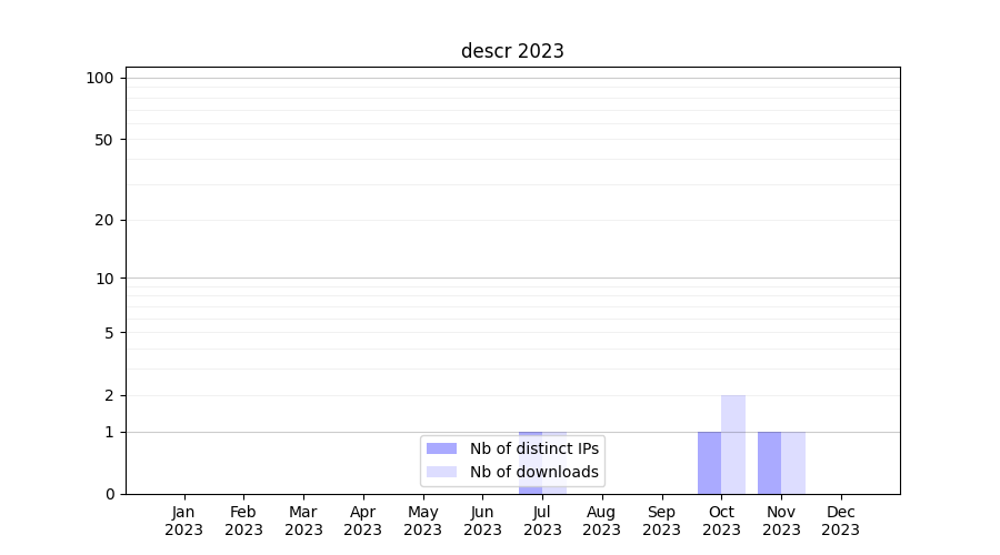 Number of downloads for software package descr, year by year, from 2025 back to 2014 (years with no downloads are omitted):
