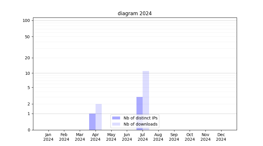 Number of downloads for software package diagram, year by year, from 2025 back to 2014 (years with no downloads are omitted):