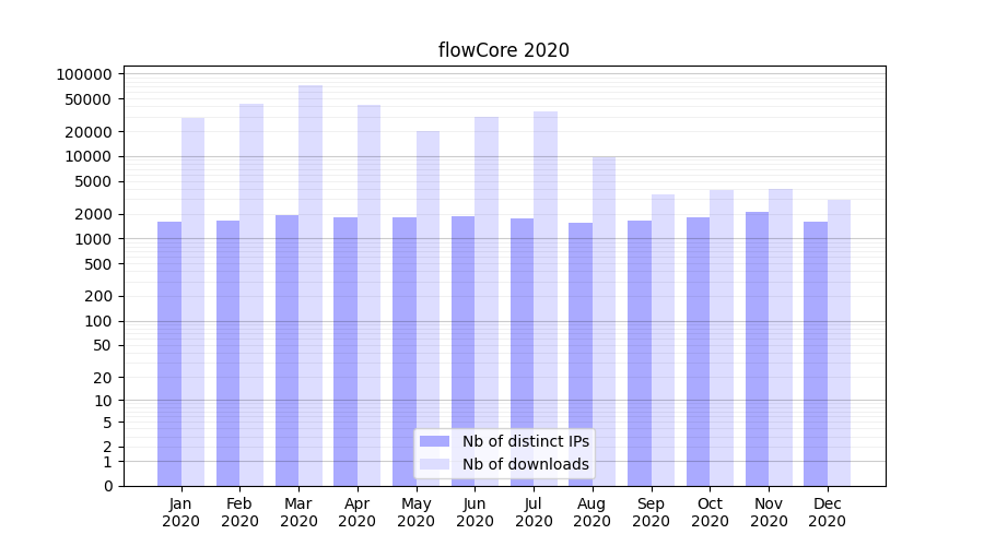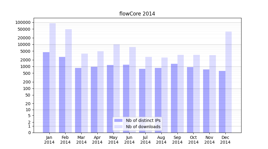 | Month | Nb of distinct IPs | Nb of downloads |