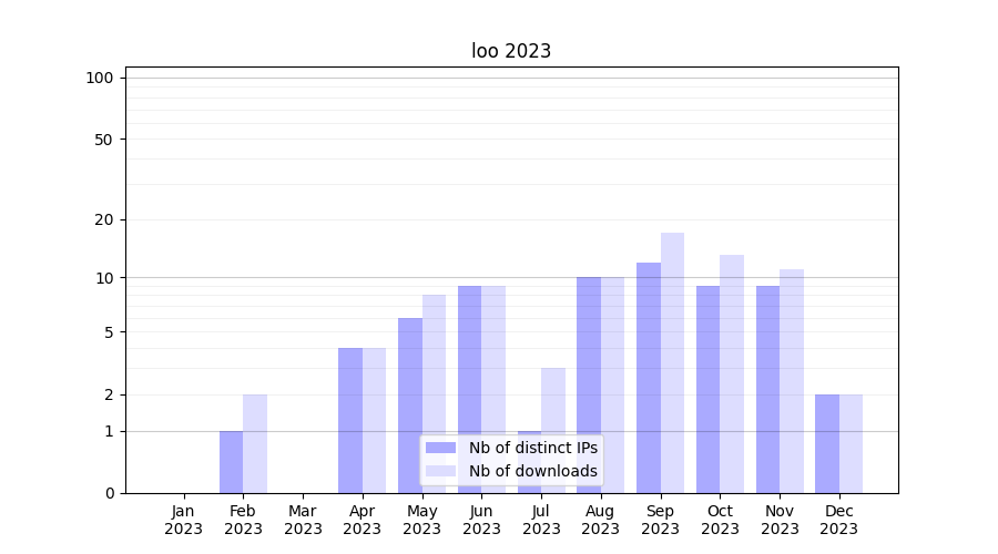 Number of downloads for software package loo, year by year, from 2025 back to 2014 (years with no downloads are omitted):