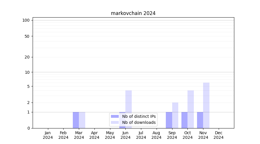 Number of downloads for software package markovchain, year by year, from 2025 back to 2014 (years with no downloads are omitted):