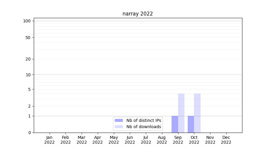 Number of downloads for software package narray, year by year, from 2025 back to 2014 (years with no downloads are omitted):