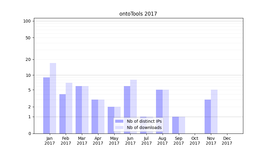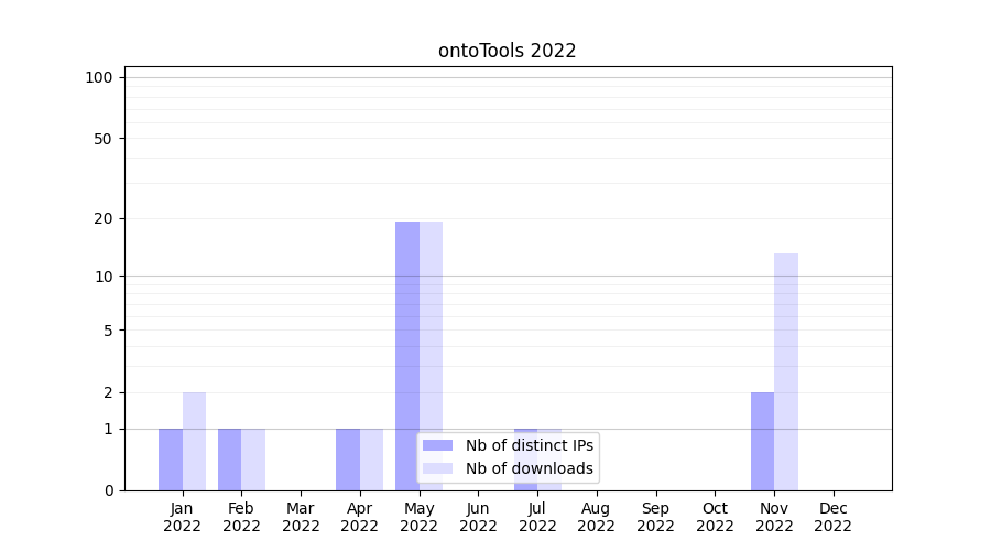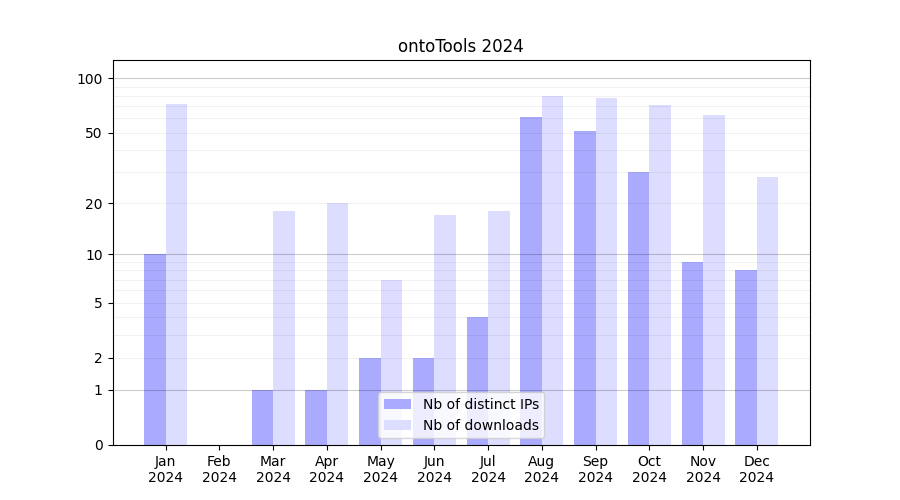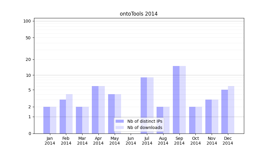 Number of downloads for software package ontoTools, year by year, from 2025 back to 2014 (years with no downloads are omitted):