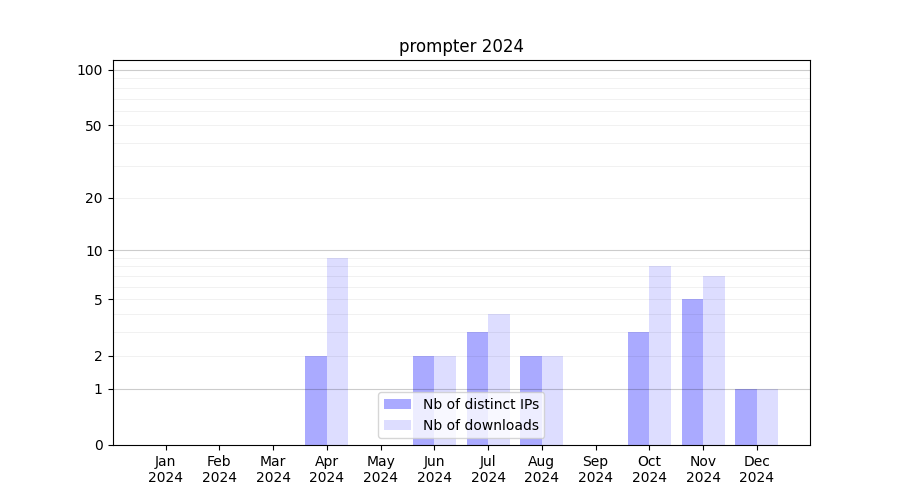 Number of downloads for software package prompter, year by year, from 2025 back to 2014 (years with no downloads are omitted):