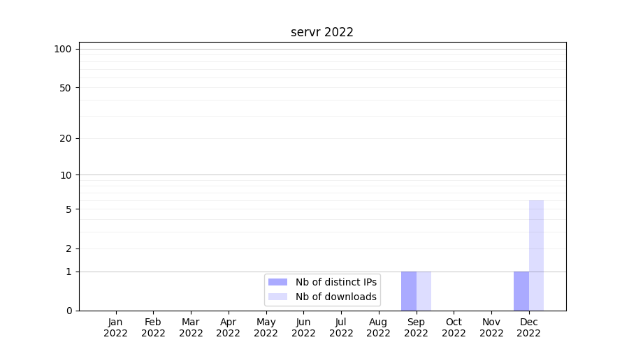 Number of downloads for software package servr, year by year, from 2025 back to 2014 (years with no downloads are omitted):
