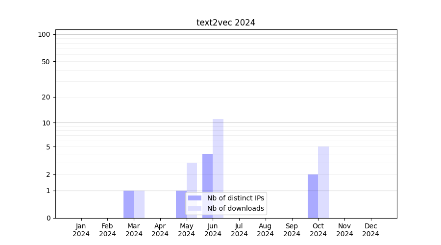 Number of downloads for software package text2vec, year by year, from 2025 back to 2014 (years with no downloads are omitted):