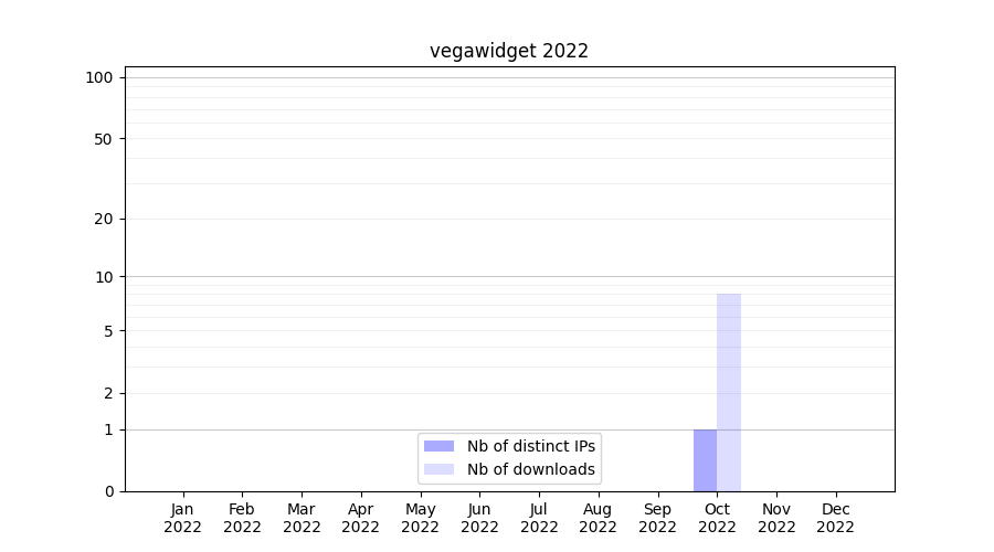 Number of downloads for software package vegawidget, year by year, from 2025 back to 2014 (years with no downloads are omitted):