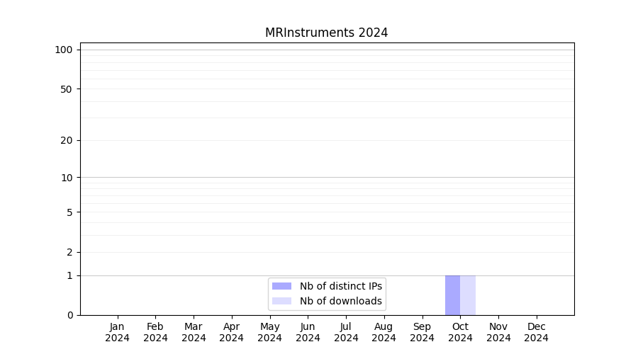 Number of downloads for annotation package MRInstruments, year by year, from 2025 back to 2014 (years with no downloads are omitted):