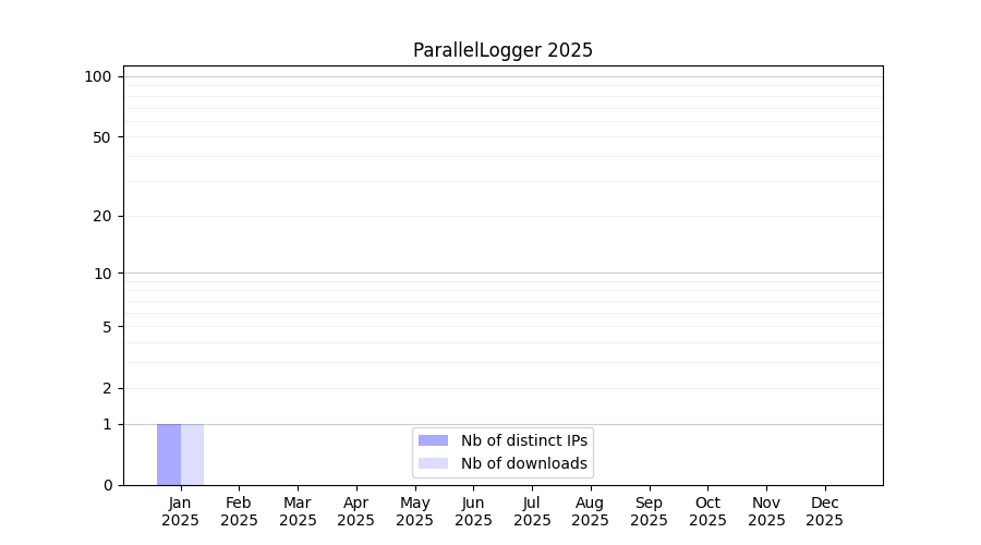 Number of downloads for annotation package ParallelLogger, year by year, from 2025 back to 2014 (years with no downloads are omitted):