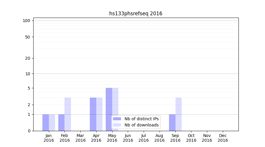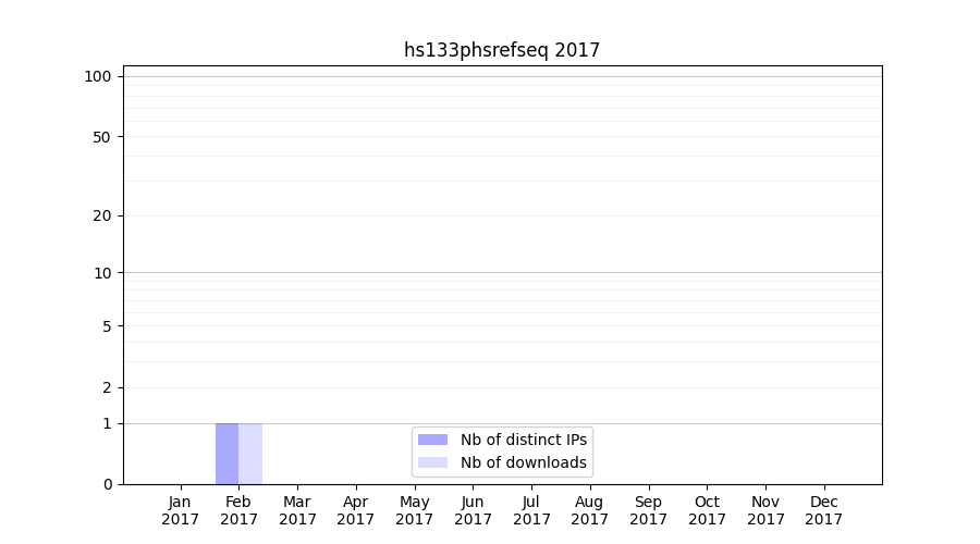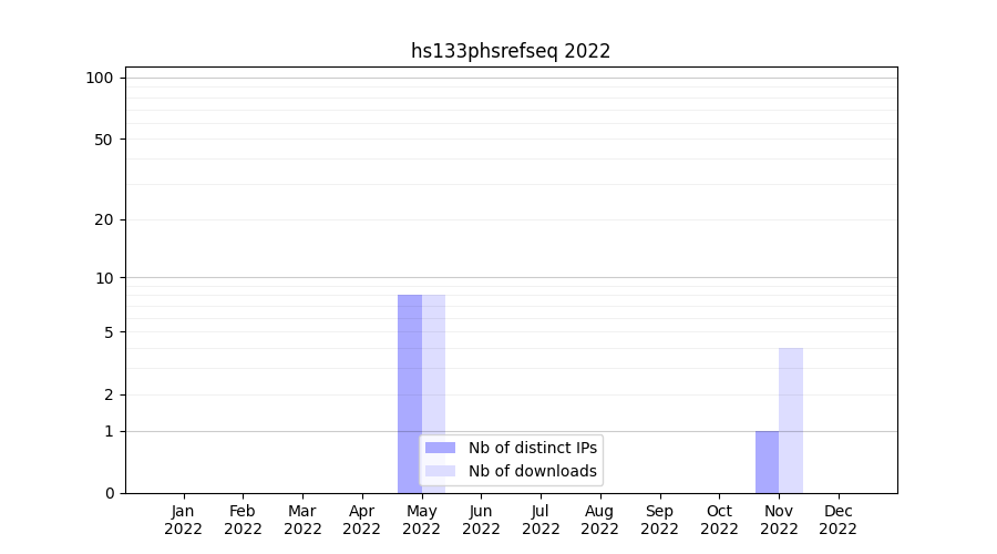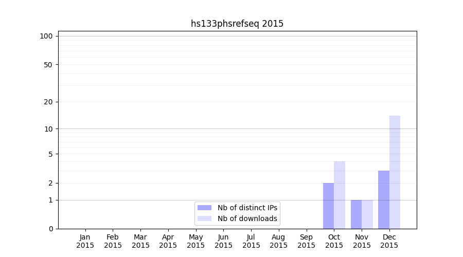 Number of downloads for annotation package hs133phsrefseq, year by year, from 2025 back to 2014 (years with no downloads are omitted):