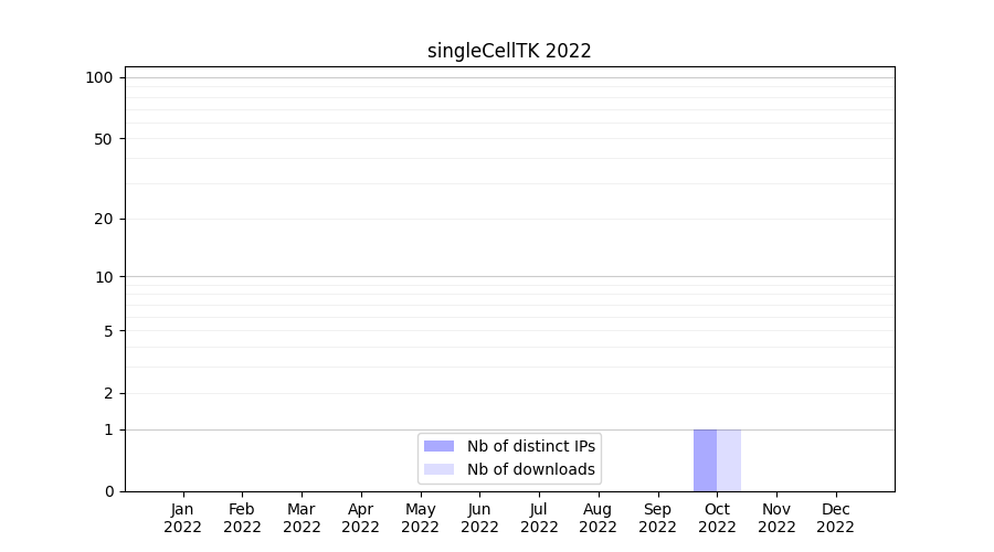 Number of downloads for annotation package singleCellTK, year by year, from 2025 back to 2014 (years with no downloads are omitted):