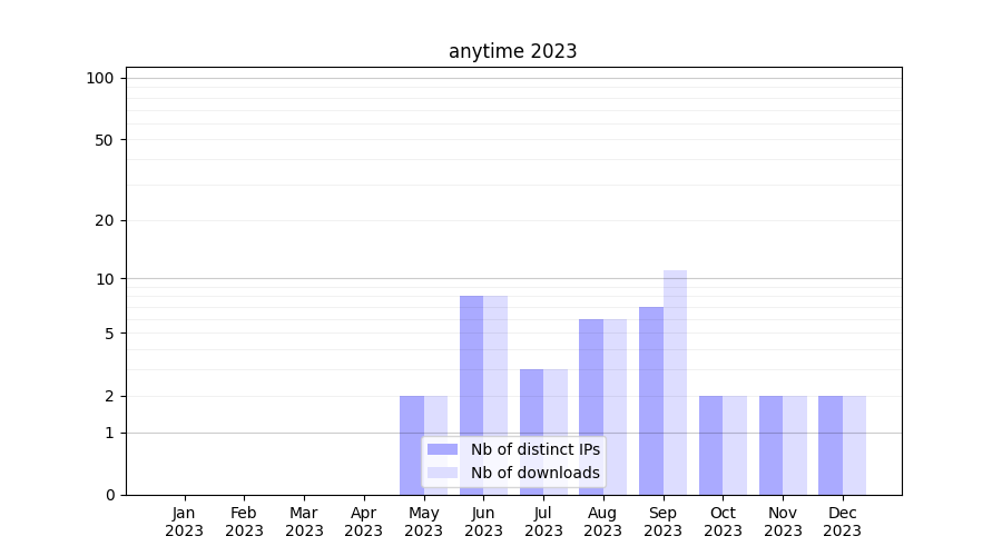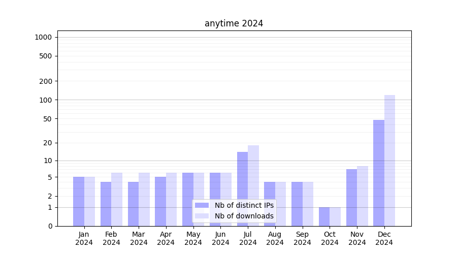 Number of downloads for experiment package anytime, year by year, from 2025 back to 2014 (years with no downloads are omitted):