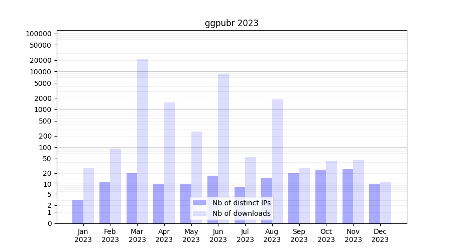 | Month | Nb of distinct IPs | Nb of downloads |