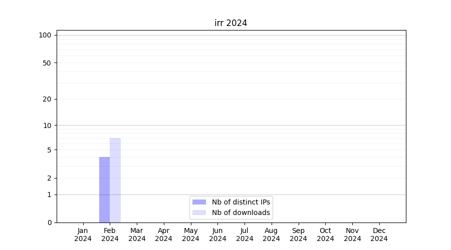 Number of downloads for experiment package irr, year by year, from 2025 back to 2014 (years with no downloads are omitted):
