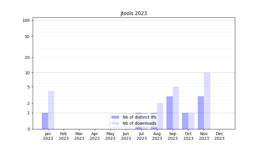 | Month | Nb of distinct IPs | Nb of downloads |