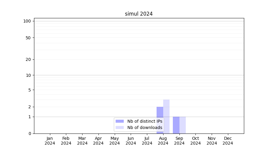 Number of downloads for experiment package simul, year by year, from 2025 back to 2014 (years with no downloads are omitted):