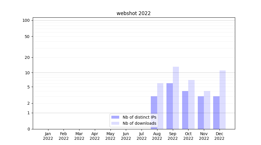 | Month | Nb of distinct IPs | Nb of downloads |