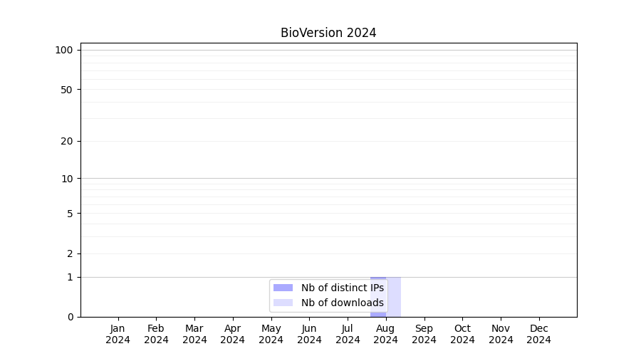 Number of downloads for workflow package BioVersion, year by year, from 2025 back to 2015 (years with no downloads are omitted):