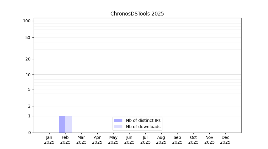 Number of downloads for workflow package ChronosDSTools, year by year, from 2025 back to 2015 (years with no downloads are omitted):