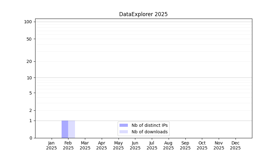 Number of downloads for workflow package DataExplorer, year by year, from 2025 back to 2015 (years with no downloads are omitted):