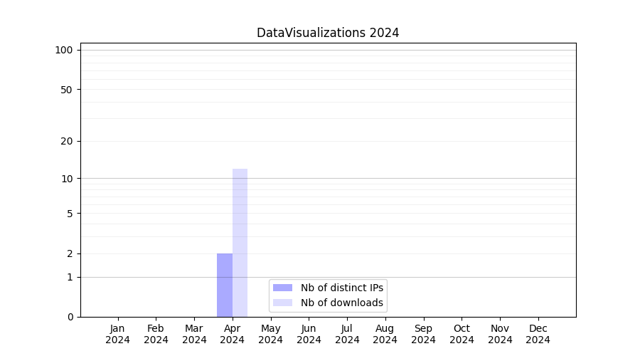 Number of downloads for workflow package DataVisualizations, year by year, from 2025 back to 2015 (years with no downloads are omitted):