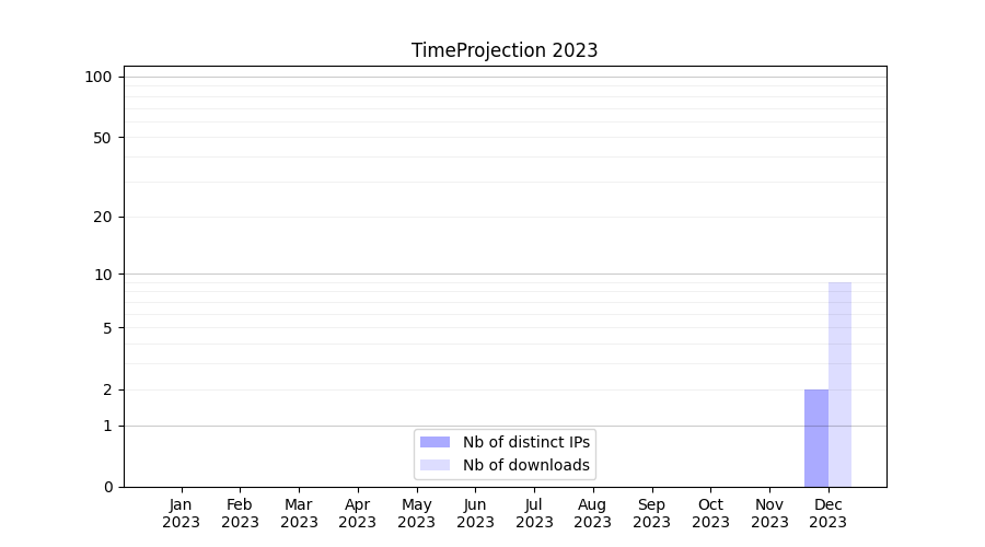 Number of downloads for workflow package TimeProjection, year by year, from 2025 back to 2015 (years with no downloads are omitted):