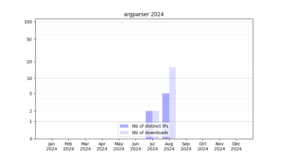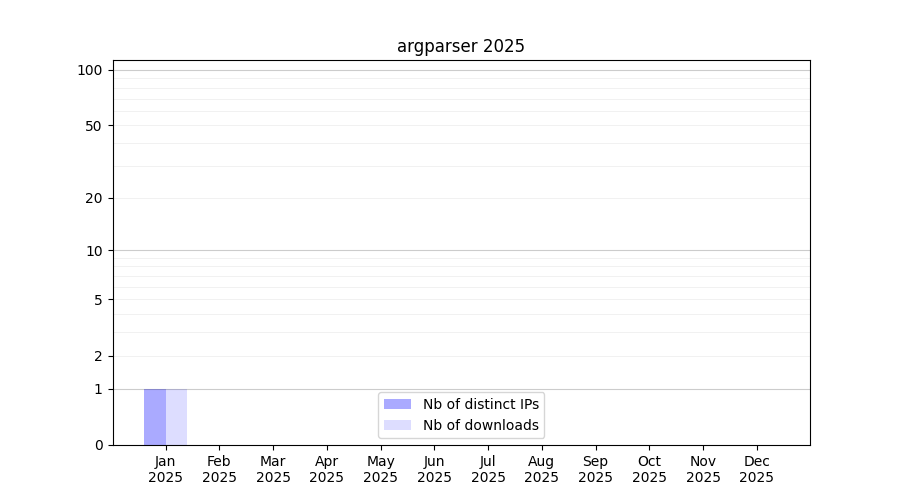 Number of downloads for workflow package argparser, year by year, from 2025 back to 2015 (years with no downloads are omitted):