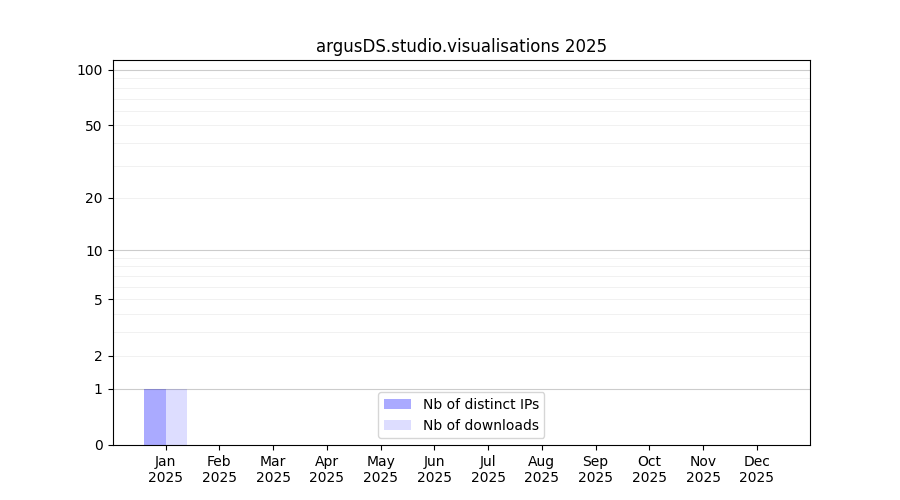 Number of downloads for workflow package argusDS.studio.visualisations, year by year, from 2025 back to 2015 (years with no downloads are omitted):