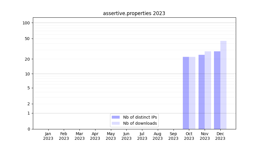 Number of downloads for workflow package assertive.properties, year by year, from 2025 back to 2015 (years with no downloads are omitted):