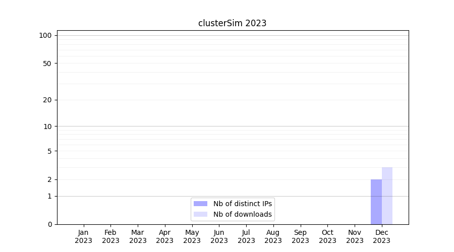 Number of downloads for workflow package clusterSim, year by year, from 2025 back to 2015 (years with no downloads are omitted):