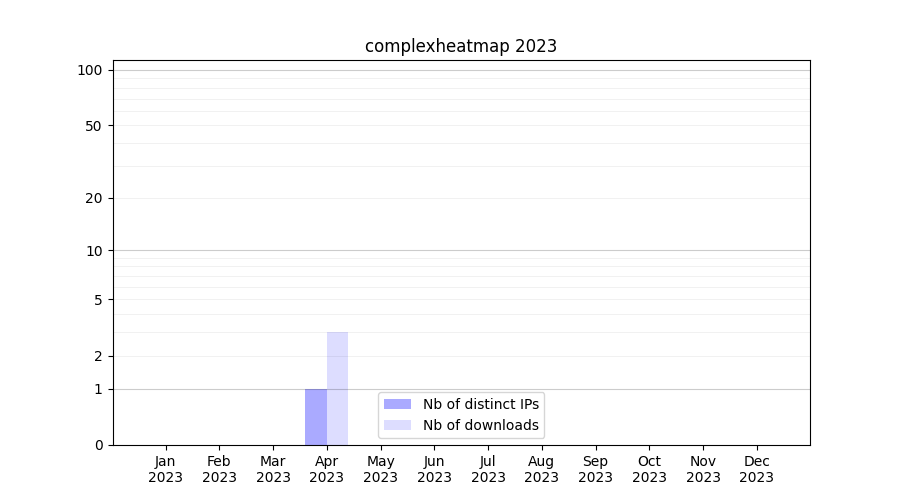 Number of downloads for workflow package complexheatmap, year by year, from 2025 back to 2015 (years with no downloads are omitted):