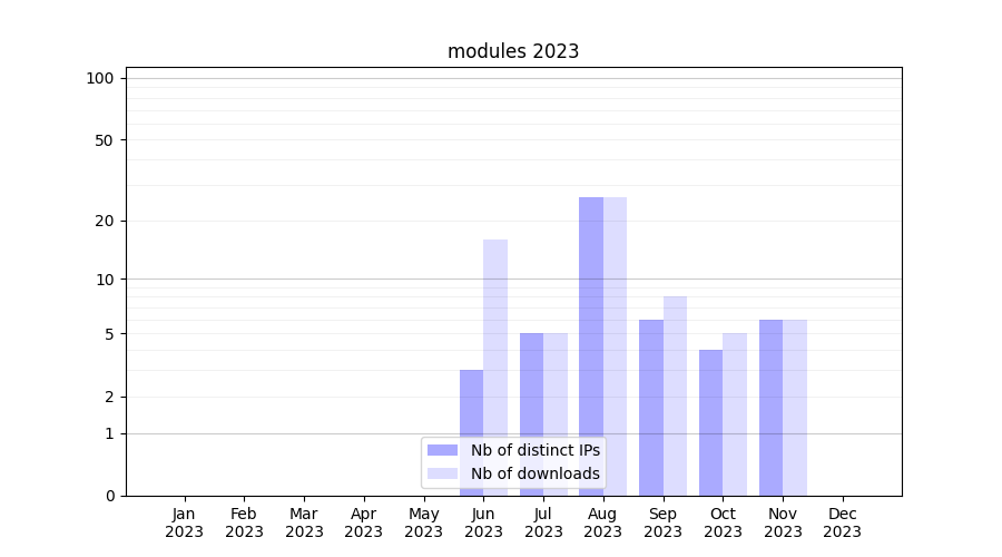 Number of downloads for workflow package modules, year by year, from 2025 back to 2015 (years with no downloads are omitted):