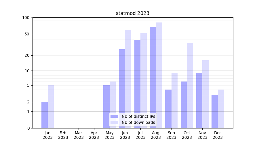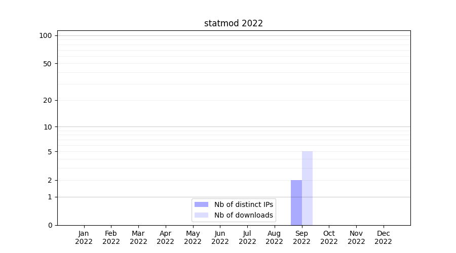 Number of downloads for workflow package statmod, year by year, from 2025 back to 2015 (years with no downloads are omitted):