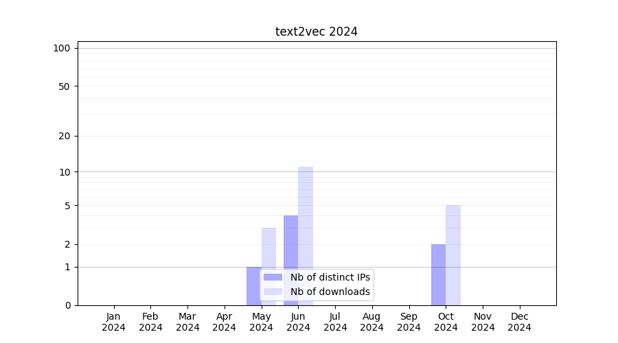 Number of downloads for workflow package text2vec, year by year, from 2025 back to 2015 (years with no downloads are omitted):