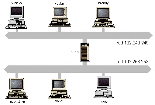 Como el software (rlogin, telnet, ftp etc.) de Einstein no puede mandar datos (paquetes de datos) directamente a Edison, la cual se encuentra en una red físicamente independiente, tiene que confiar en un gateway que transporta los paquetes al destino correspondiente. Es decir que el gateway "mats" dirige los paquetes al gateway "fisa", que tiene la misma función para la red de los físicos. La transferencia pasa vía el backbone de la universidad y "fisa" entrega los datos finalmente a Edison. Este esquema de transmisión de datos a un host lejano (computadora de una red) se llama Routing y los datos o paquetes de datos son designados datagrams.