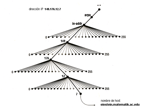 Hasta ahora hablamos del mapeo de nombres a direcciones. Pero, que sucede si usted de repente tiene la dirección IP y desee saber el nombre de este dominio. Para solventar este problema fue creado el dominio "in-addr.arpa". (Figura 5)
