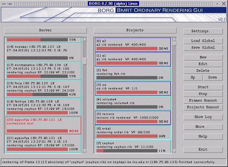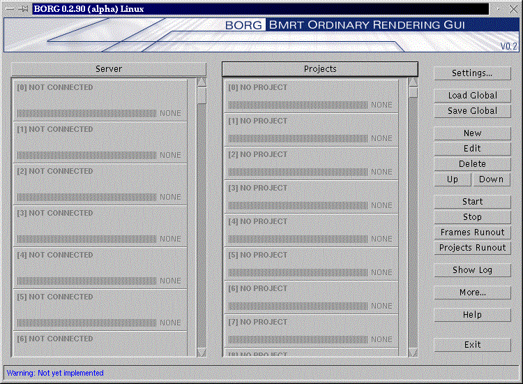 BORG - beta версия, с некоторыми ограничениями. Одно из них невозможность запуска BORG Servers из BORG Server Manager. Запуск BORG Servers необходимо выполнять с компьютеров, на которых они установлены. Может быть позже что-нибудь изменится и авторы программы сделают BORG Servers демонами, которые будут использовать специальный порт и соединяться при необходимости. Второе, но менее значительное ораничение состоит в том, что при переводе сообщений и надписей на турецкий язык мы обнаружили проблемы с отображением их - т.е. некоторые части некоторых надписей стали невидимы.